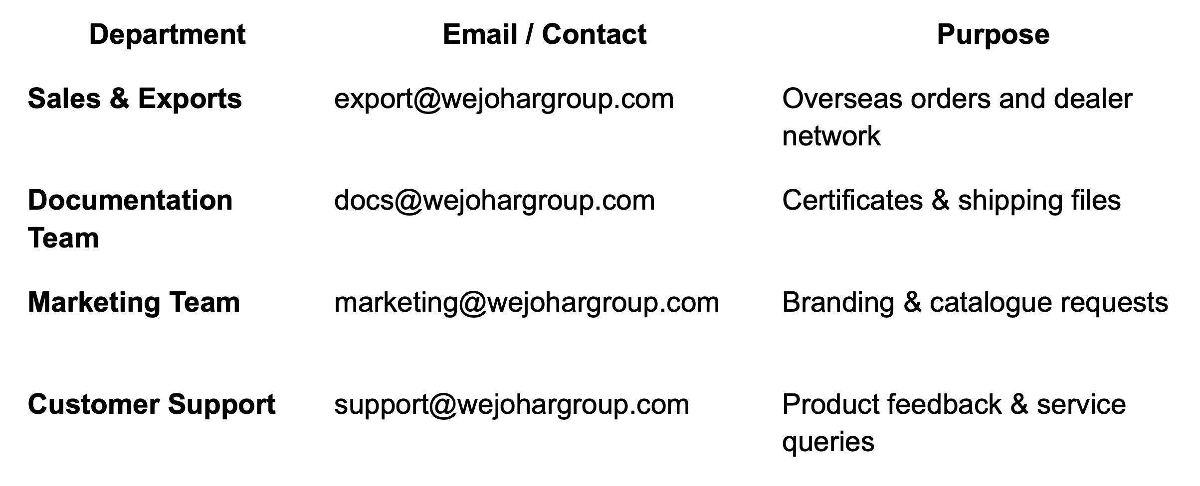 WeJOHAR is known for its fast communication and professional handling of all inquiries.