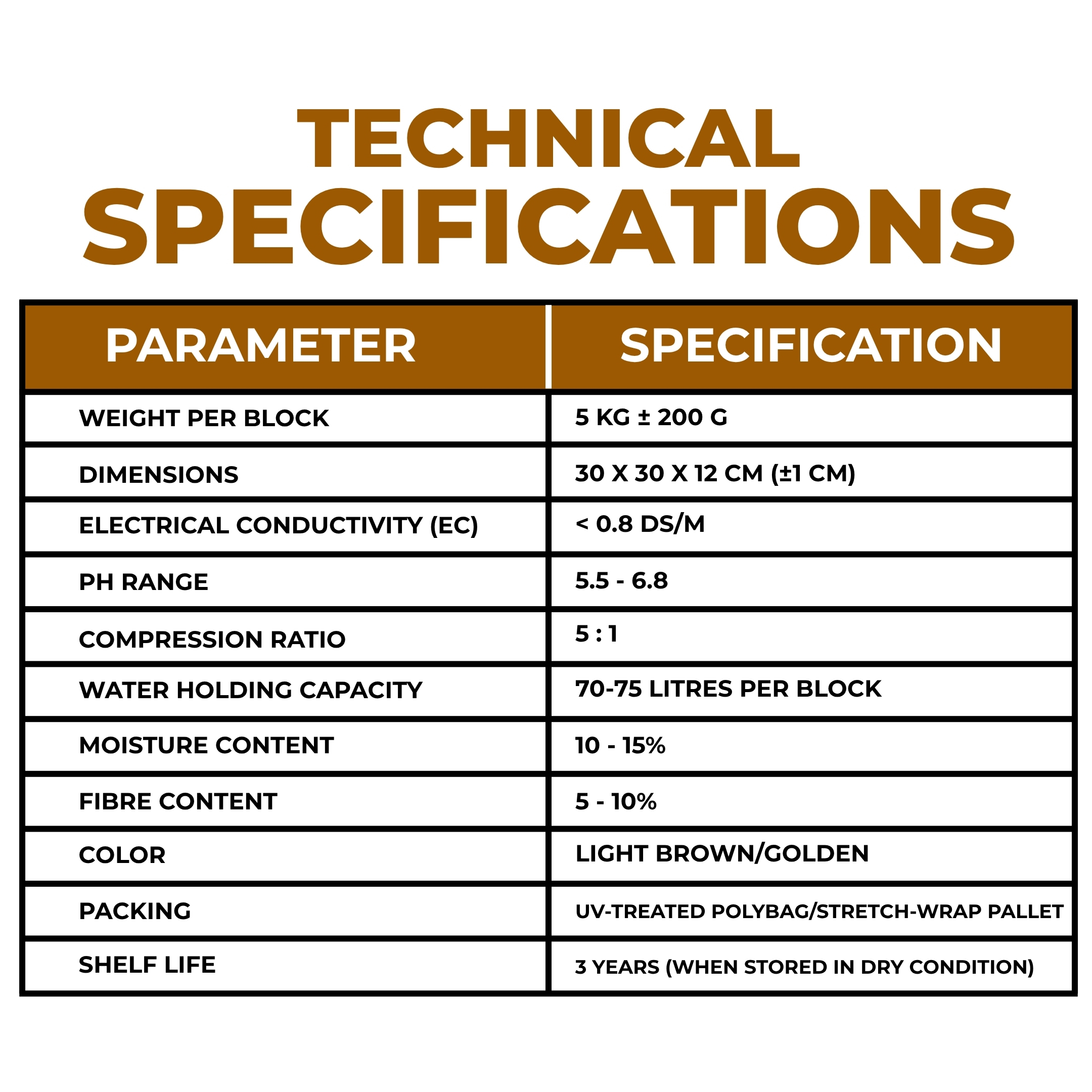 WeJOHAR’s 5 kg Low EC Cocopeat Block is a natural, organic, and sustainable growing substrate produced from carefully processed coir pith. Each block is washed, dried, sieved, and compressed to ensure ultra-low EC levels (< 0.8 dS/m) — ideal for hydroponic and nursery applications.